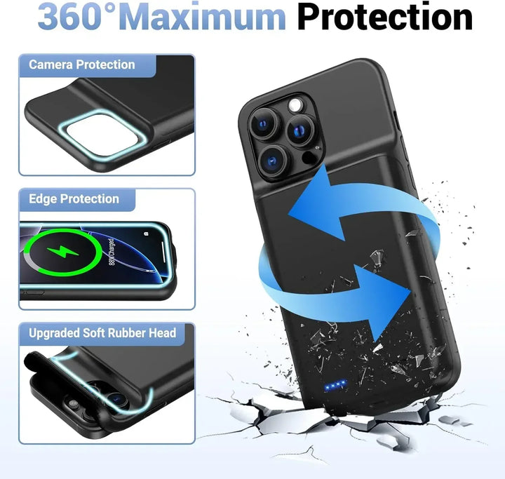 This Battery Case is the perfect fusion of protection and power, giving your iPhone a full battery boost while shielding it from drops and wear. Whether you're traveling, working, or just out and about, this sleek all-in-one case keeps your phone charged, protected, and ready for anything.